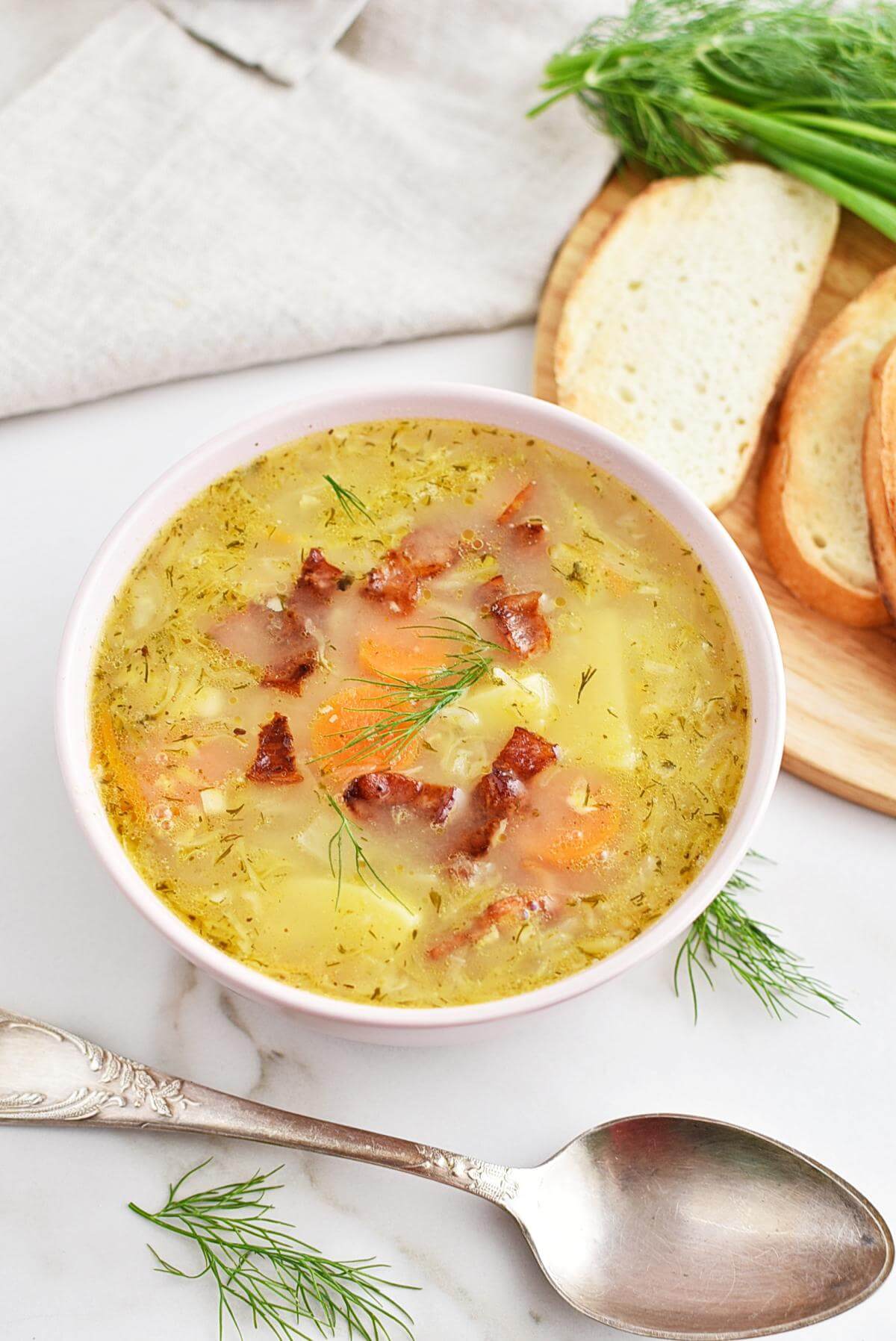 Directions rinse the sauerkraut in cold water and leave to drain. Add stock, allspice, bay leaves and let simmer on low until the pork is nice and tender (for about an hour). You can alter the amounts of the veggies or meat according to your tastes.soup is simply a mix of what you like Pot heat butter on low and gently place ribs in the pan. Saute until softened and golden (5 min). Add the cooked bacon, potatoes, sauerkraut, 5 cups water, bouillon cubes and caraway seeds. Cover and simmer 30 minutes longer. In a large pot heat up the oil, add the bay leaf, onion and fry for a couple of minutes over a medium heat stirring occasionally. Stir in flour to coat the sausage and onion. Add finely chopped celery and onion. Yukon gold potatoes, medium onion, paprika, parsley, heavy cream and 6 more. Keep the heat low to prevent the ribs from burning. Start by bringing water, salt and potatoes to a boil in a large soup pot.